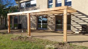 Dans cette dynamique de végétalisation, une nouvelle pergola a récemment été installée, accompagnée de quatre pieds de kiwi et de quatre pieds de vignes du Palais petit.