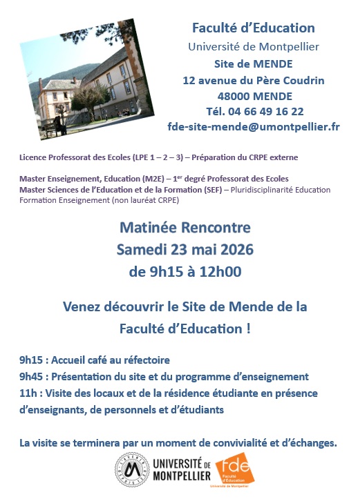 The Faculty of Education, Mende campus, could be defined by the keyword "proximity, " by the small size of our university structure, but also by: